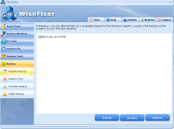 Backup:WiseFixer™ provides you Registry Backup, Restore Point, Favorites Backup and Folder Backup. You can save the registry data, favorites and folder private information with WiseFixer™.